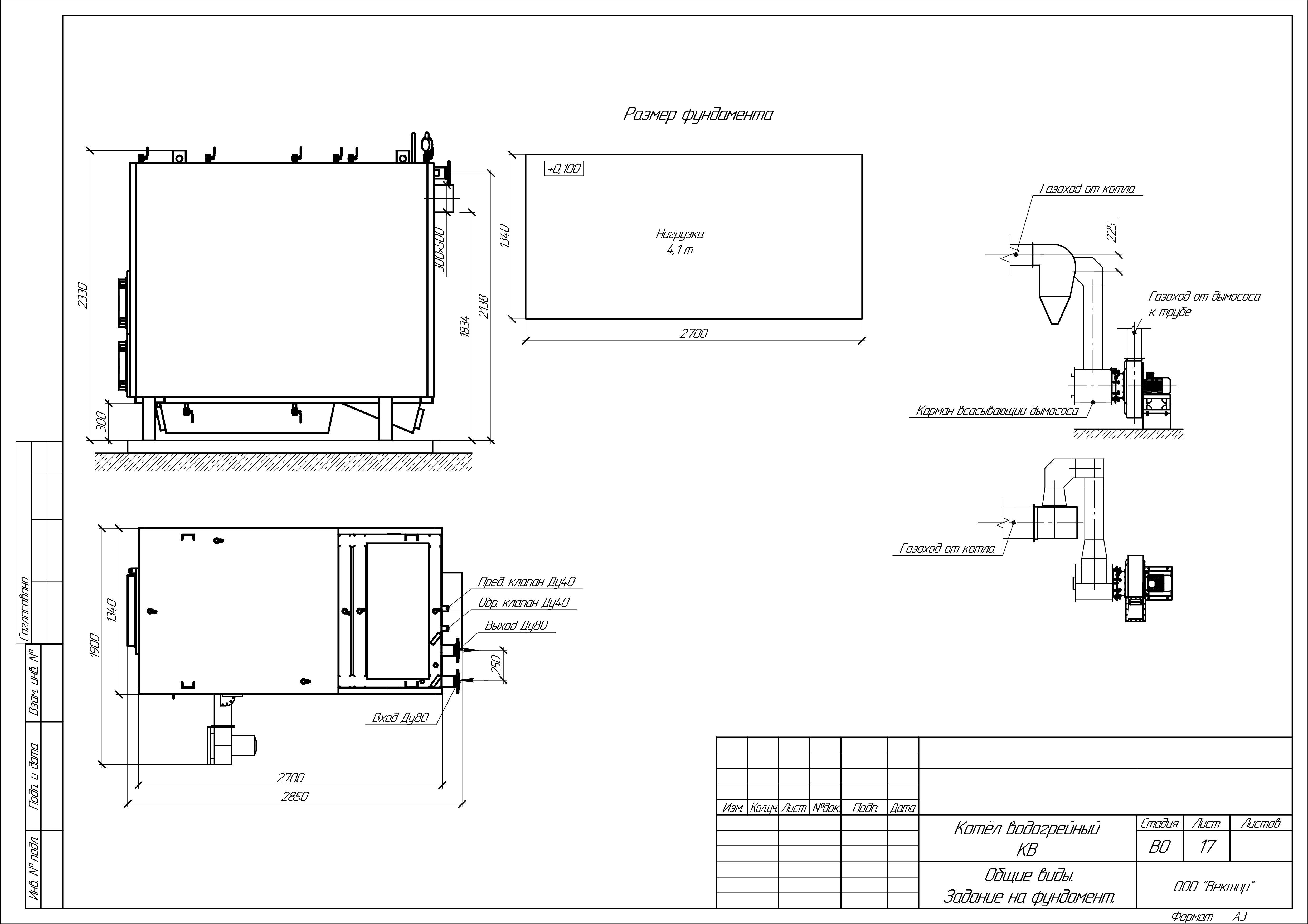 Масса котла (без воды): 4600 кг